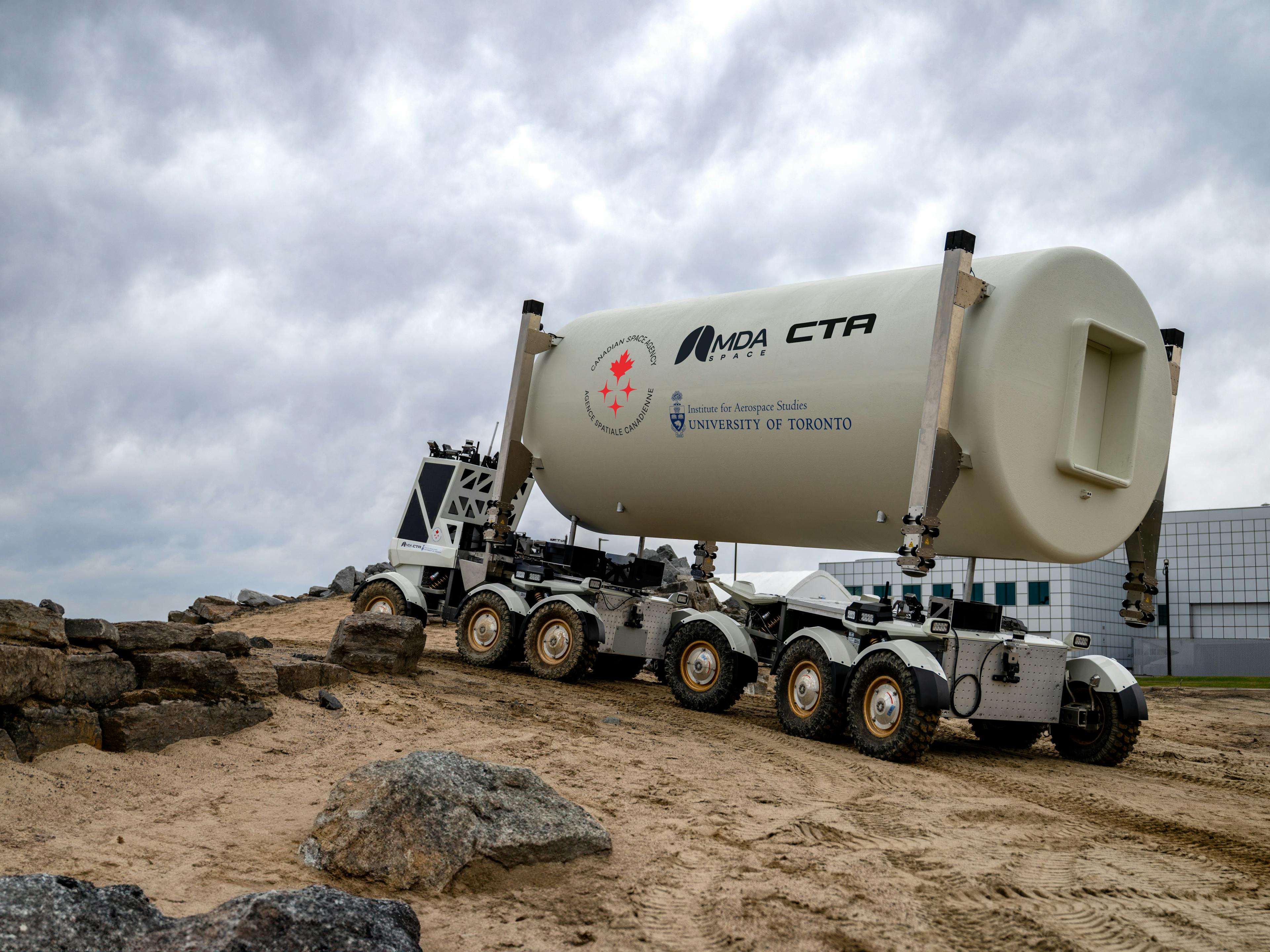 Combining CTA’s expertise in vehicle engineering, UTIAS’s advanced autonomy algorithms and MDA SKYMAKER™, the robotics solution derived from legendary Canadarm technology, the prototype was made to maneuver on the Moon. It can transport cargo across challenging terrain, handle multi-tonne payloads, and operate autonomously, semi-autonomously, or manually from a command centre as far away as Earth.